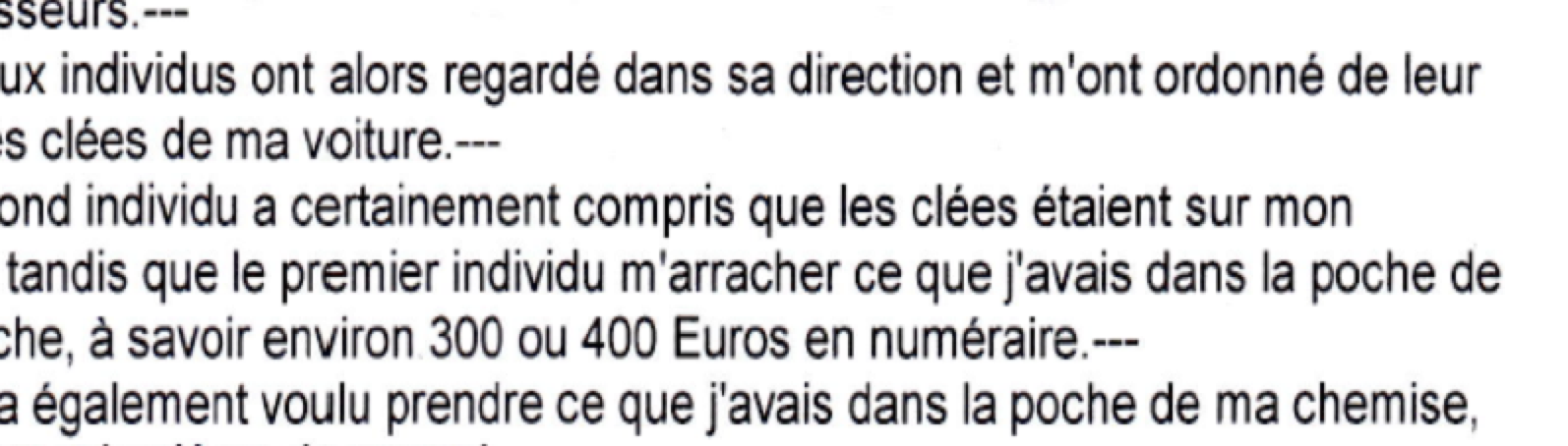 L’AGRESSION CAR JACKING - EXTRAIT PV POLICE – PLAINTE DU DR CARION.