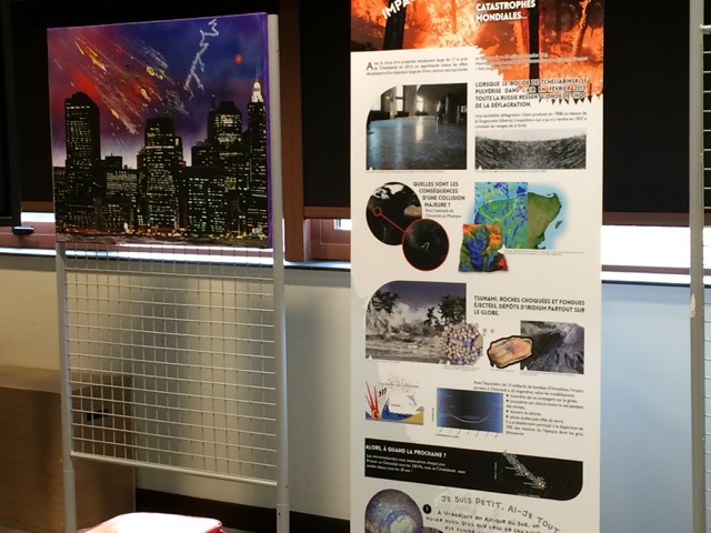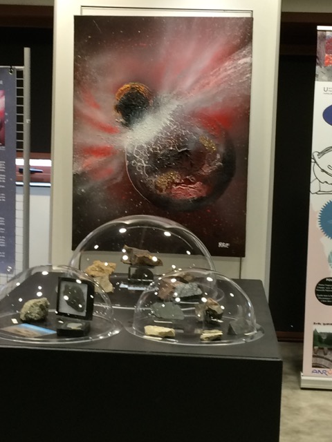 Les tableaux de RAF. continuent de voyager, près des Dunes de Flandre et sous le ciel improbable du Nord. Texte et photos du Dr. A. Carion. Autorisation de publier du 18.04.16. << Sept tableaux de RAF. accompagnent une partie de ma collection personnelle de météorites, et l’ensemble est présenté du 02 au 24 avril au Palais de L’Univers et des Sciences << Le Plus >> à Cappelle-La-Grande en banlieue de Dunkerque dans le Nord. Cette exposition devrait être reprise dans les mêmes lieux cet été.>> Dr. A. Carion.