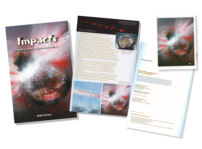 RAF. fait la couverture du livre du Dr. A. Carion- Impacts météorites et pierres de choc- avec son tableau – DEEP IMPACT –Livre publié en hiver 2017