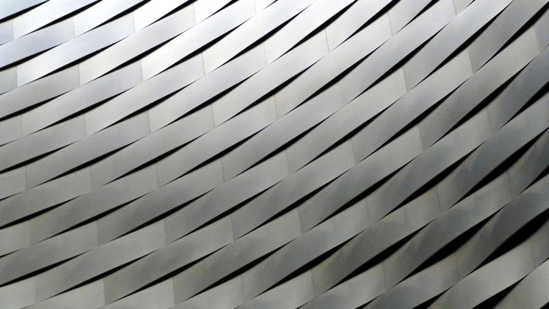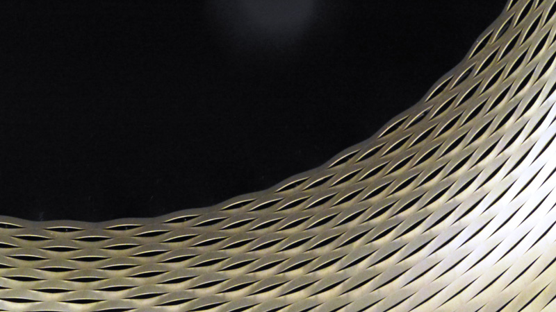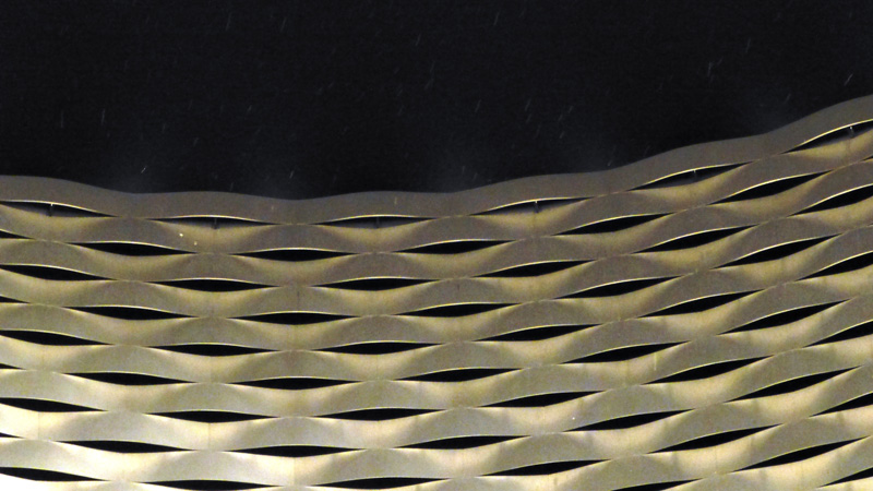 Je suis sous la structure. Oeuvre monumentale,comme un tressage d'osier métallique.