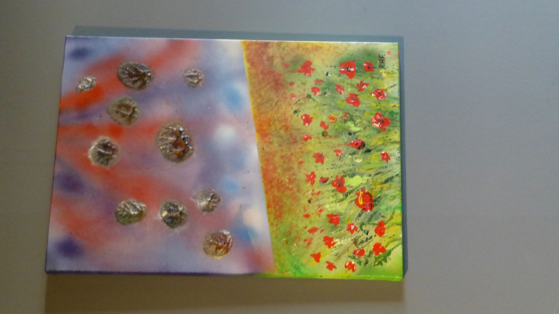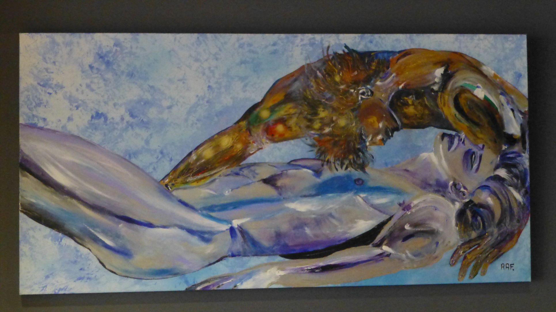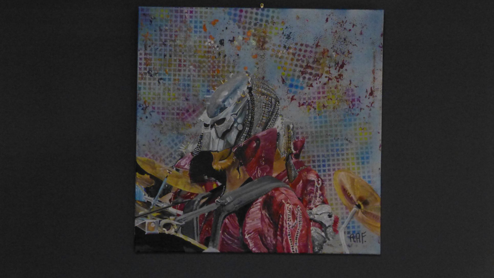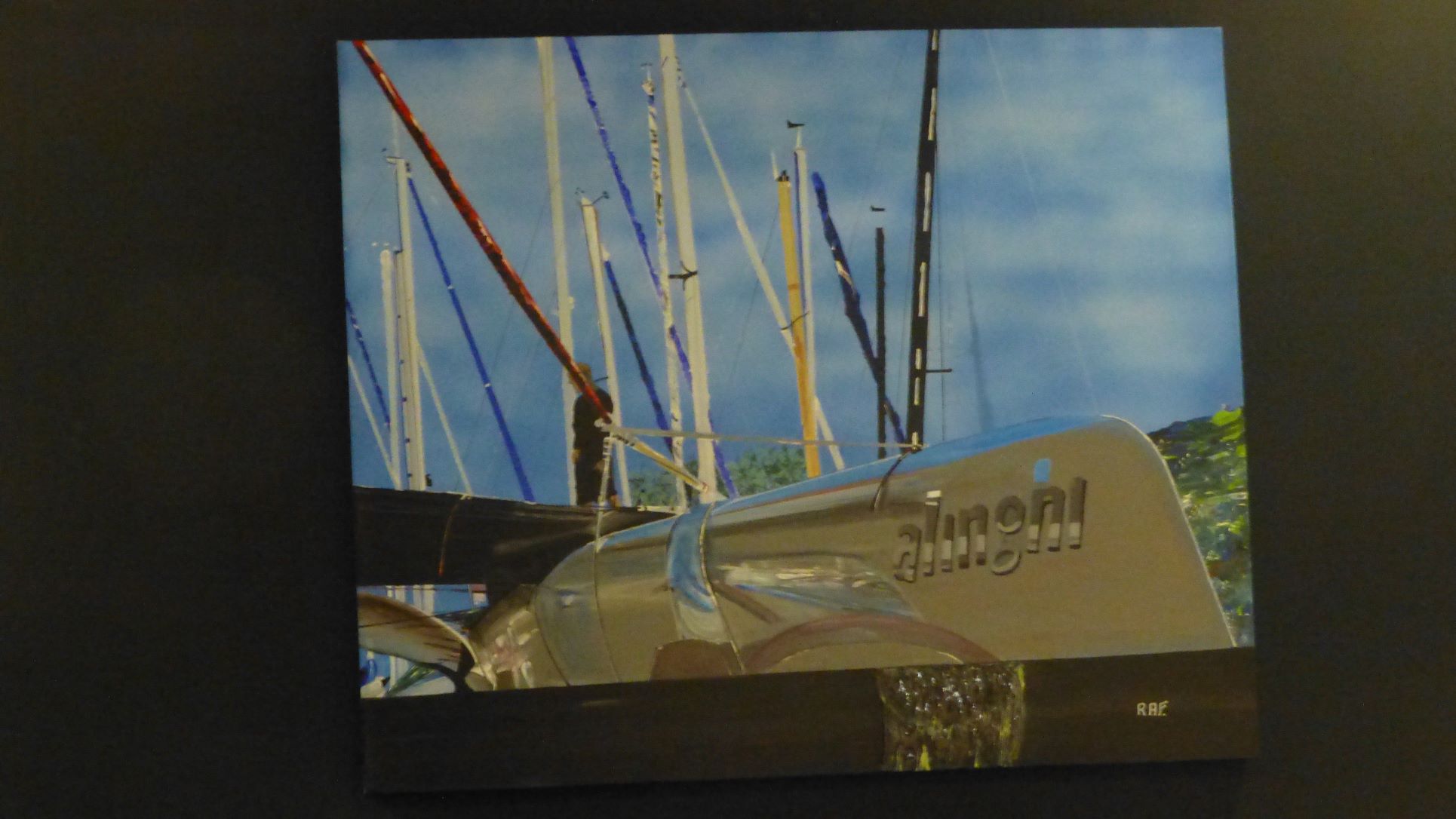 Exposition de 16 œuvres de RAF pour le 3ème anniversaire du magasin, à la demande d’un voisin propriétaire du magasin. Photos et titres des œuvres. Gros succès de la fête, de nombreux visiteurs. Visite cuisines et tableaux en décoration.