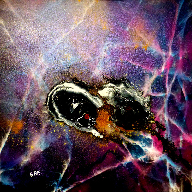 JUST BEFORE--(Two black holes before gravitational waves, before space-time fracture, before the entanglement ) - Dimensions 80 x 80