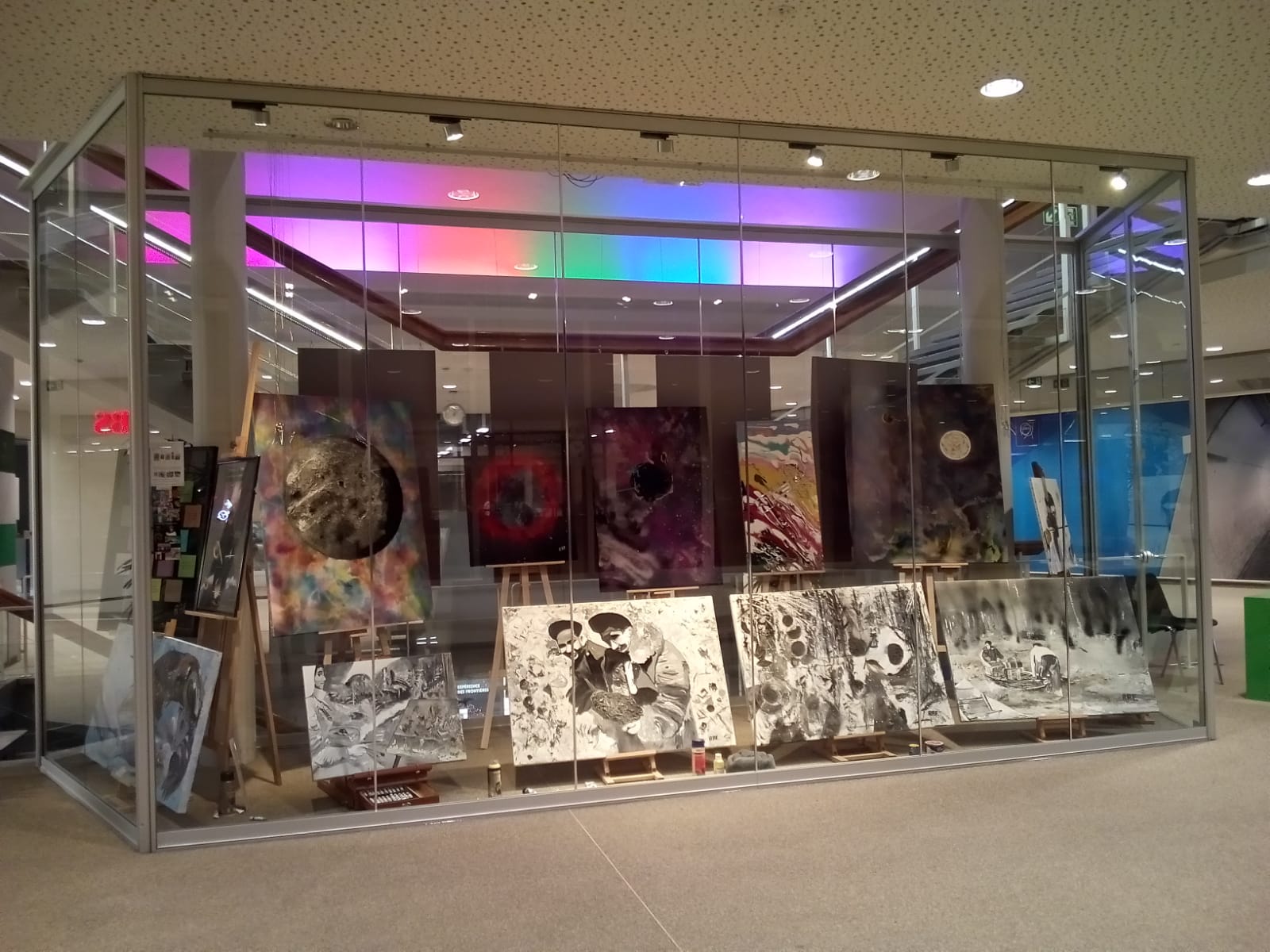 Grande vitrine de nuit et petites vitrines , photo de RAF. Photos prises par Mr Hervé Salino CERN ,publiées avec son aimable autorisation