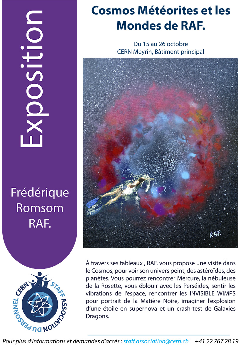 Cosmos Météorites et les Mondes de RAF. Du 15 au 26 octobre 2018. Merci à Mr Hervé Salino initiateur de l’exposition et merci au Staff Association du Personnel du CERN.