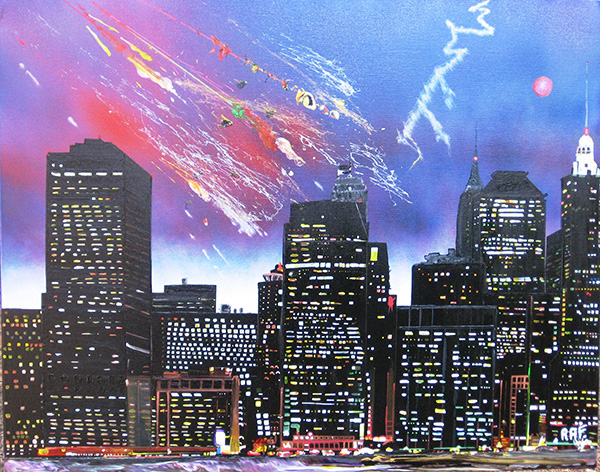 Pluie de Météorites sur New-York - Dimensions 92 x 73