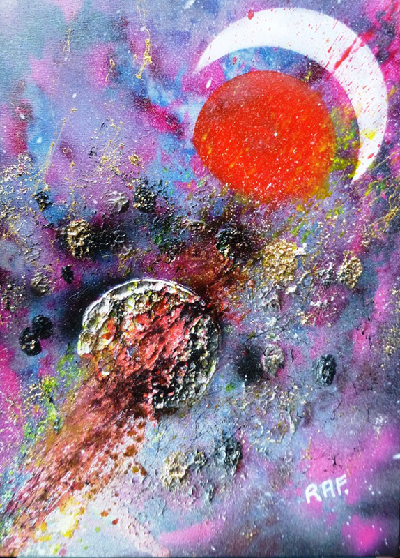Je remercie Mr Calderon, galeriste, qui sublime tableaux et objets dans ses vitrines et qui a collaboré avec Mr Sébastien Doutard, notre meilleur artiste photographe, pour mettre en valeur les tableaux de RAF. dans la galerie.